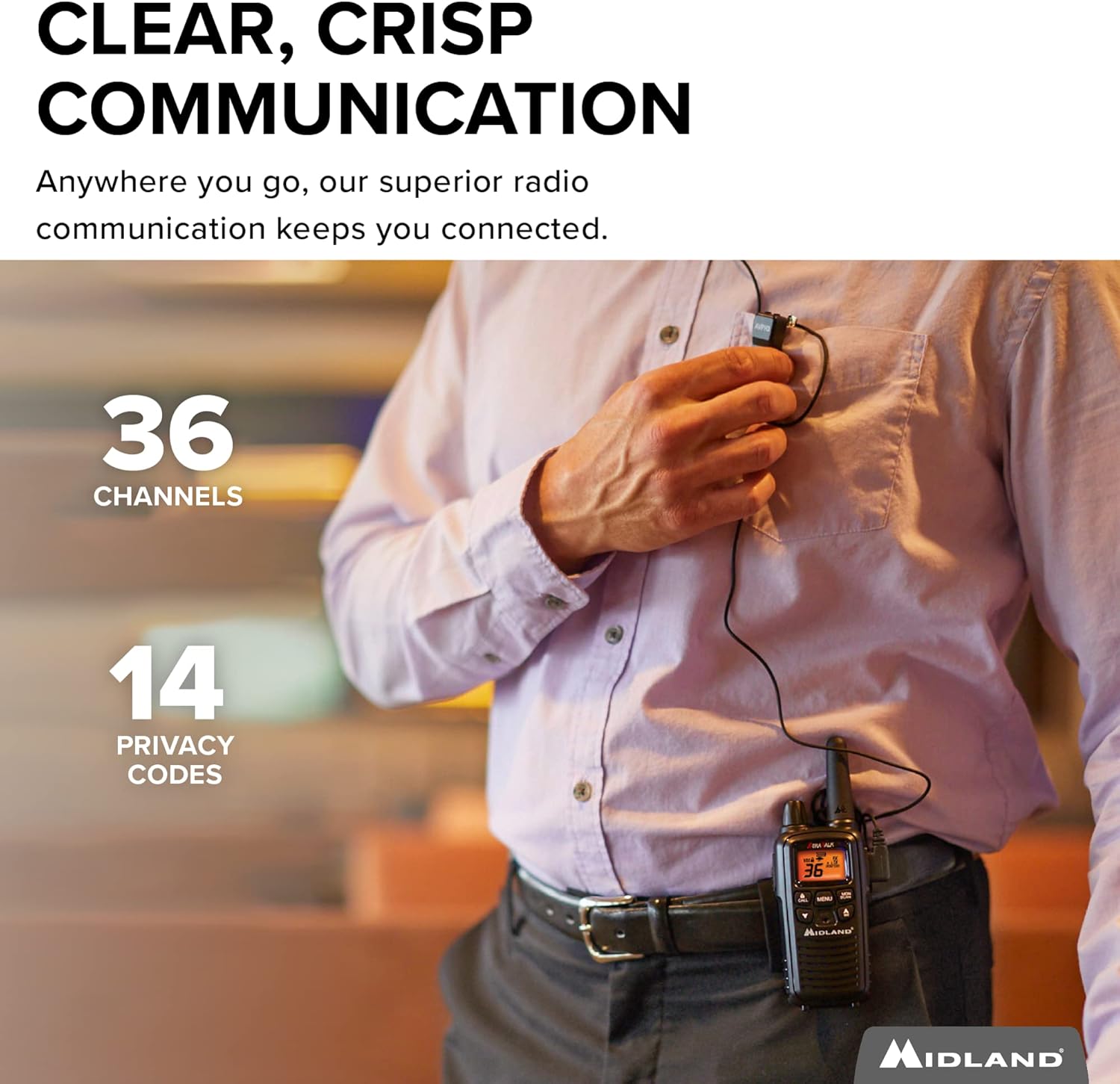 "Midland 36 Channel FRS Two-Way Radio - Long Range Walkie Talkie with 36 Channels, Silent Operation, and NOAA Weather Alert Technology (Black, Pair Pack)"